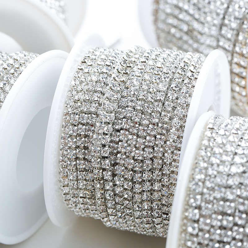 Shine Glass Rhinestone on Metal Cup Chain, DIY Rhinestone Chain For Garment Bag Shoes Earing Decorations.
